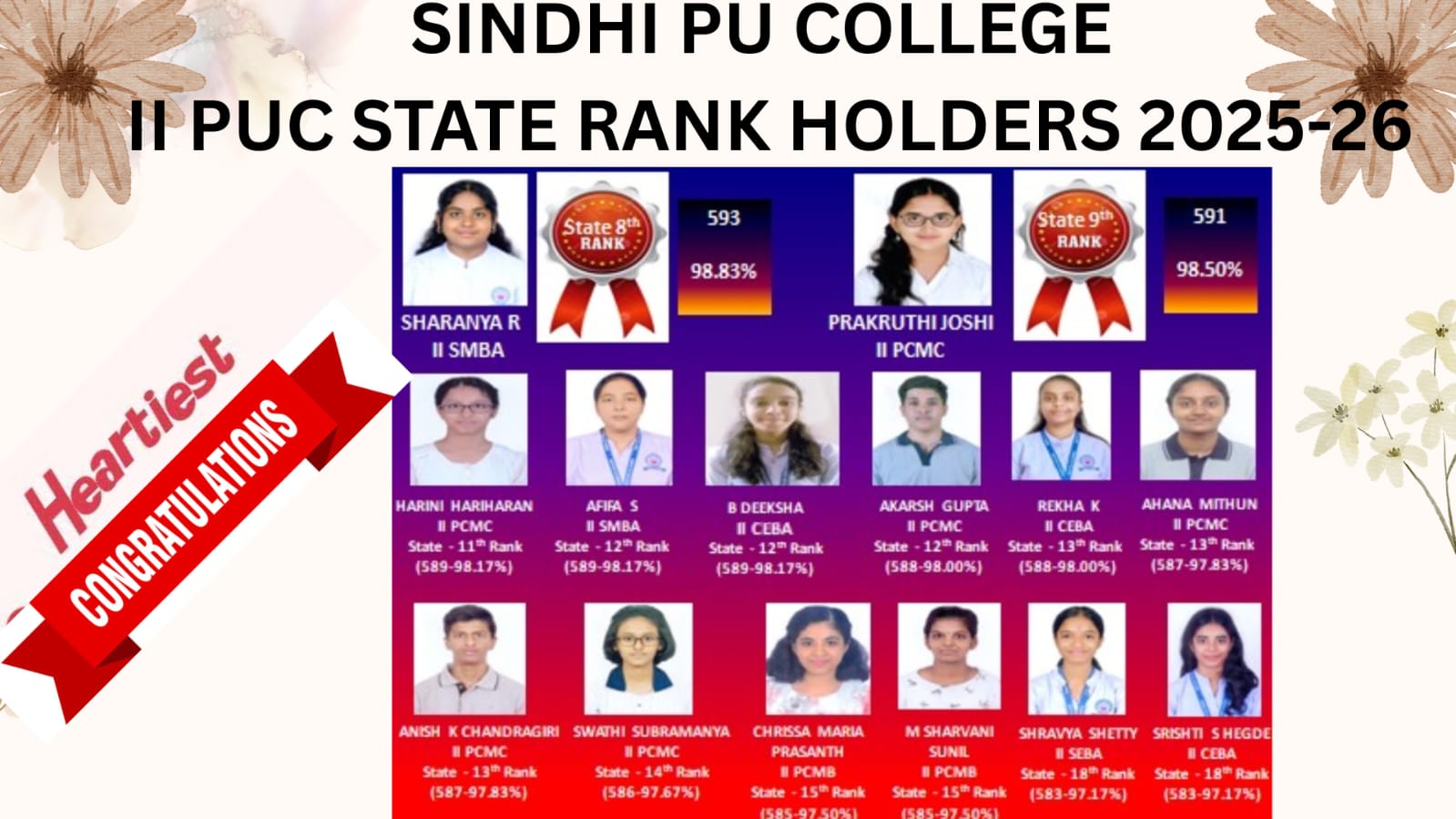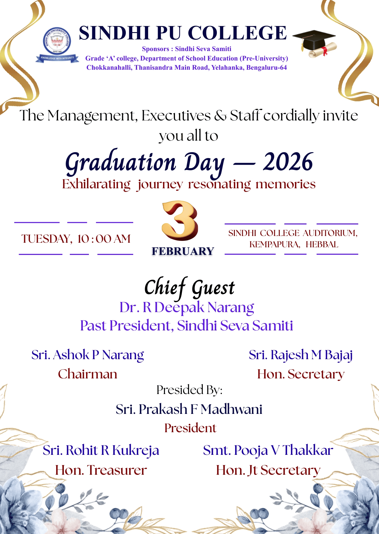 Principal, Staff and students of Sindhi PU college congratulate Sri. R Deepak Narang for being conferred the prestigious SINDHU RATNA award by the SINDHI FEDERATION OF SOUTH INDIA