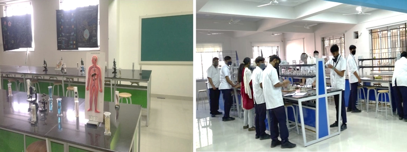 "LEARNING BY DOING" is the mission of biology laboratory in Sindhi P U College. Biology lab provides both technical and scientific support to the students for the preparations and practice of their experiments in the prescribed syllabus (NCERT) and infra structure necessary to conduct experiments. Biology lab is well equipped to support 30 students in a batch.