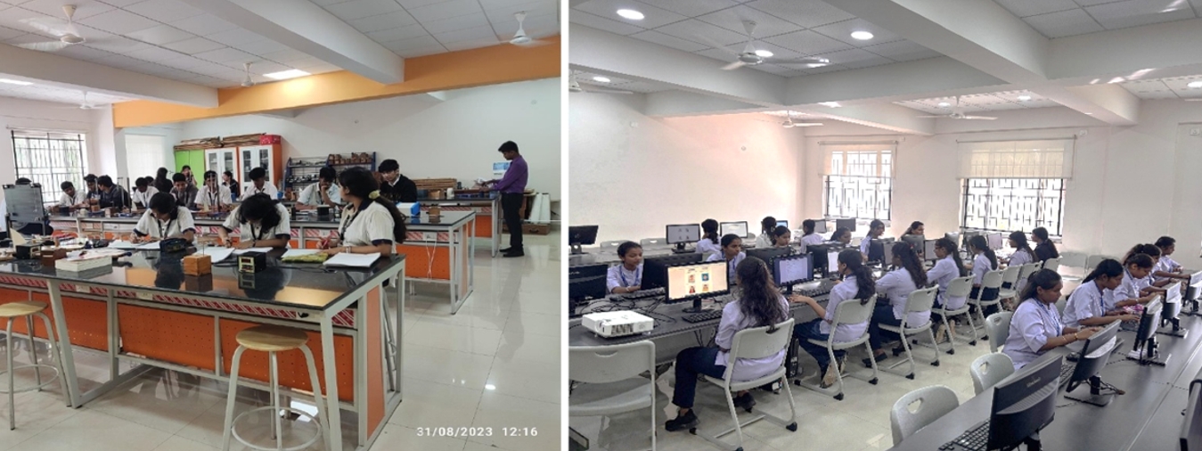 Spacious Computer Science labs accommodate 40+ systems available to the students for both science and commerce field. The laboratories are provided with recent configurations systems.