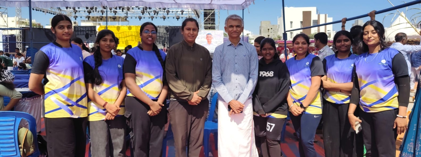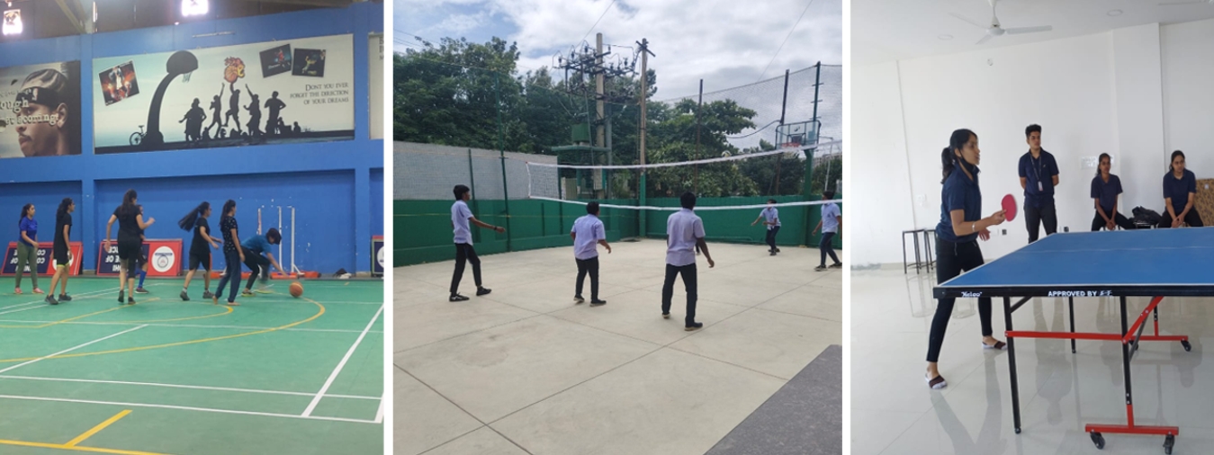 Indoor sports infrastructure for basketball, throw ball, net ball, volleyball, badminton, tennikoit, table tennis, carom. Students are trained to participate in intercollegiate, State and National level competitions.